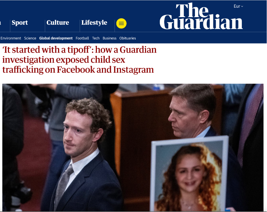 Our investigation “How Facebook and Instagram Became Marketplaces for Child Sex Trafficking” (Guardian, 2023) has been cited as one of the critical evidential news sources from the New Mexico Attorney General into the landmark trial verdict in March of the State of New Mexico vs. Meta Platforms Inc.